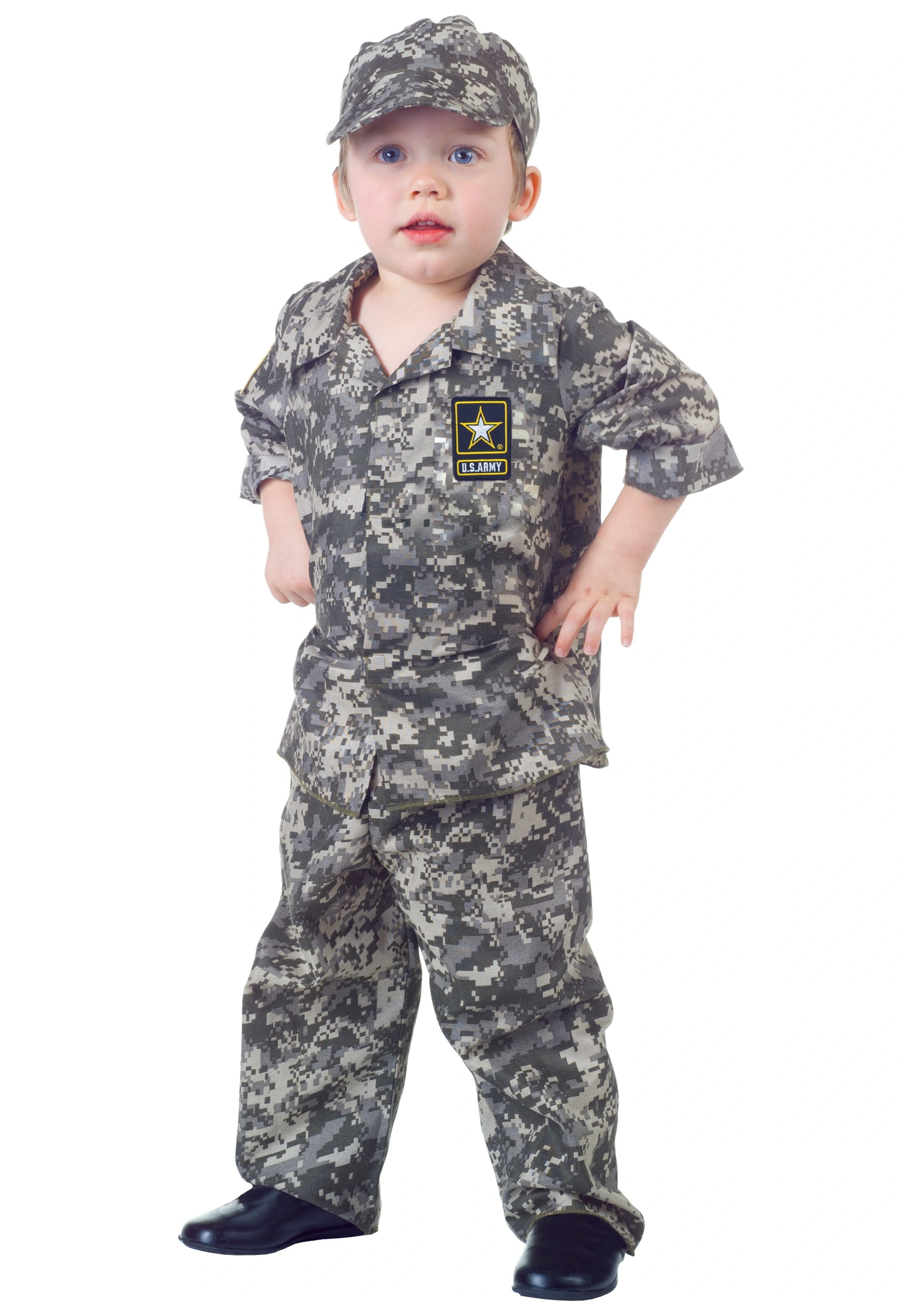 The U.S. Army patch on the chest adds a touch of authenticity to the costume, making it a great choice for Halloween or any other dress-up occasion. The camo pants feature an elastic waist, ensuring a comfortable fit for all day play. And to complete the look, the matching cap adds a touch of style and practicality, keeping the sun out of their eyes on a warm day.