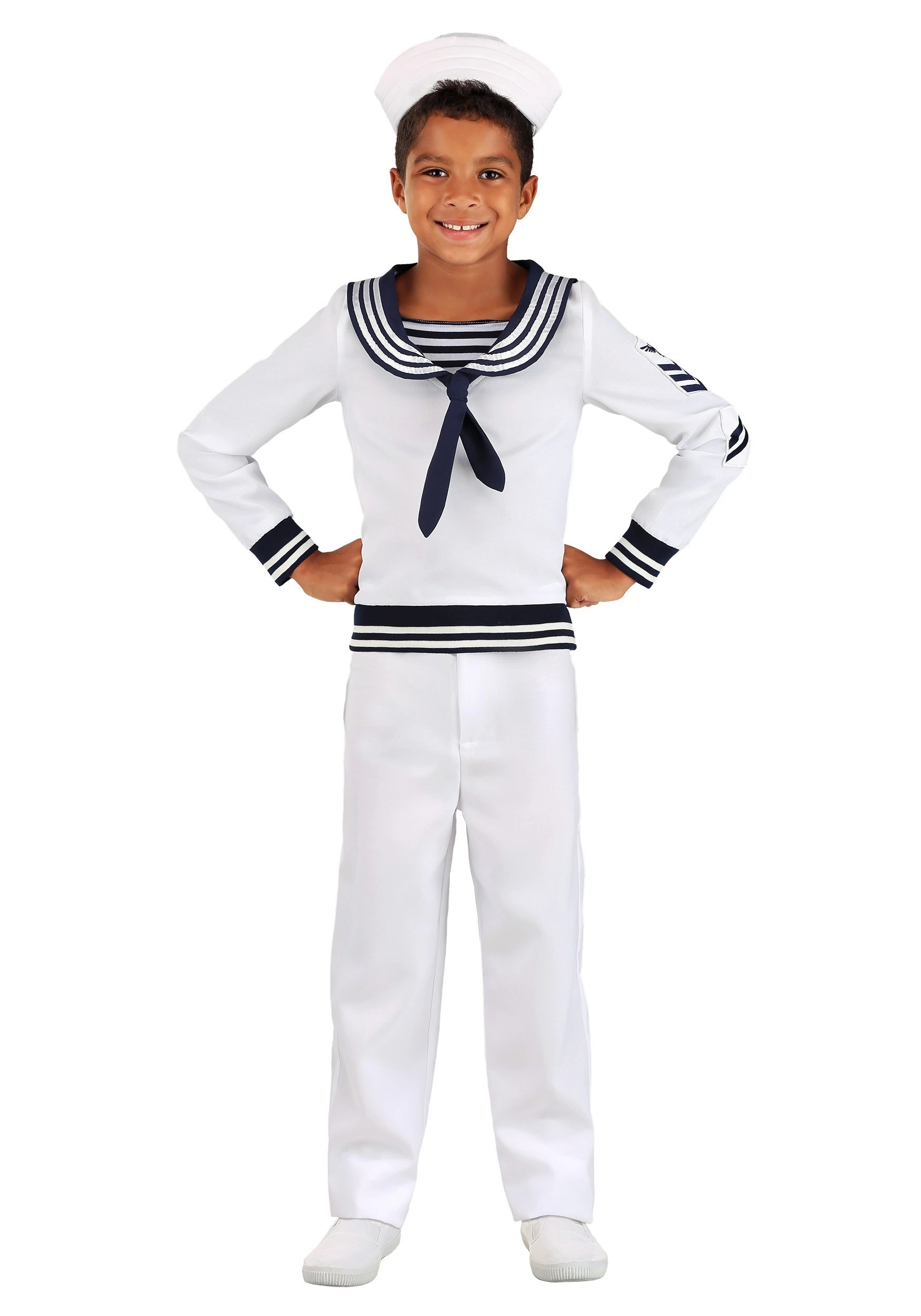 This is an exclusive Boy’s Deckhand Sailor Costume.