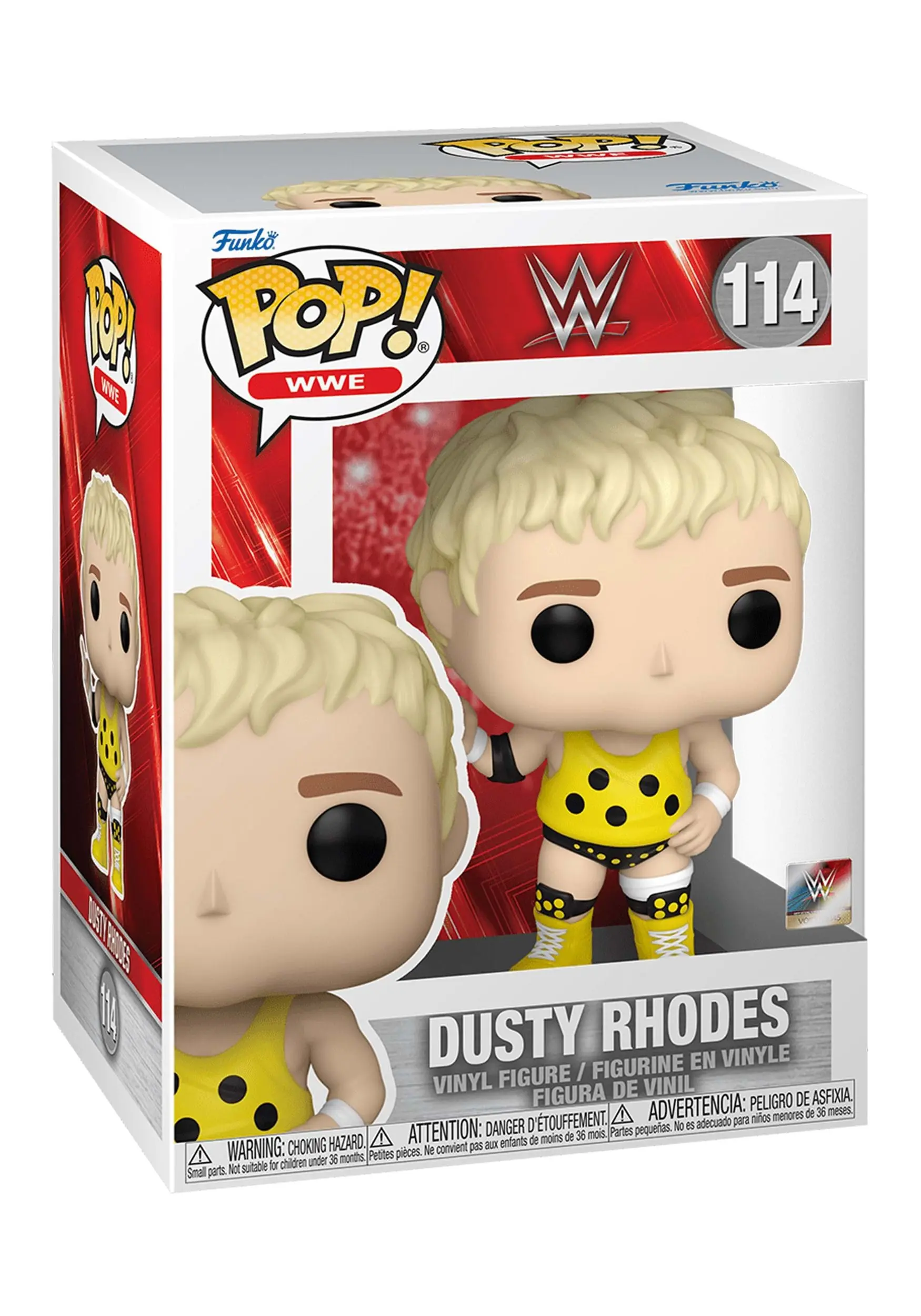 Dusty Rhodes is back with a bang! This highly detailed and collectible figurine stands 4 inches tall and perfectly captures the likeness of the legendary wrestler. The Pop WWE Dusty Rhodes figure features the wrestler in his iconic polka dot outfit, complete with his signature yellow boots. Made of high-quality vinyl, this Funko Pop Vinyl is perfect for any wrestling fan or collector. Add it to your collection today and relive the glory days of the WWE!