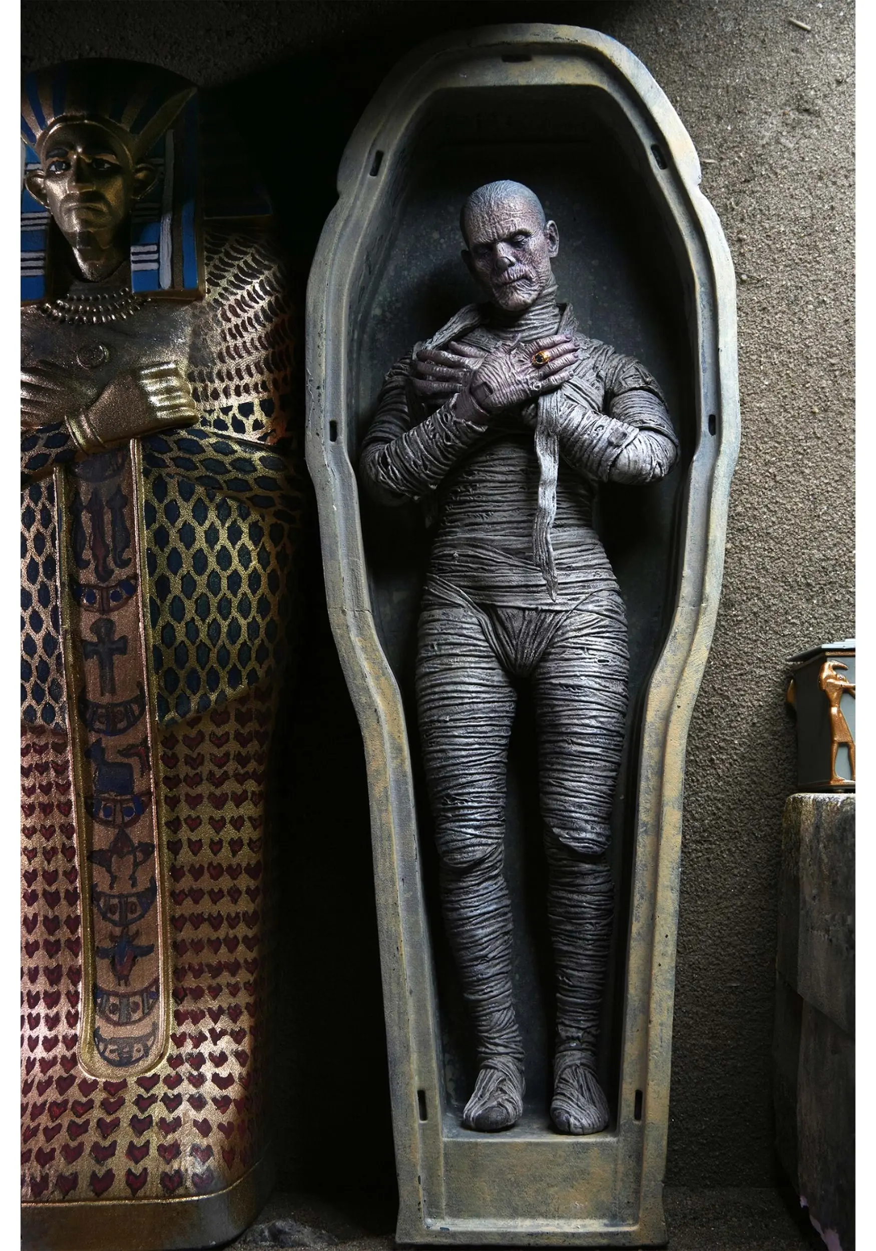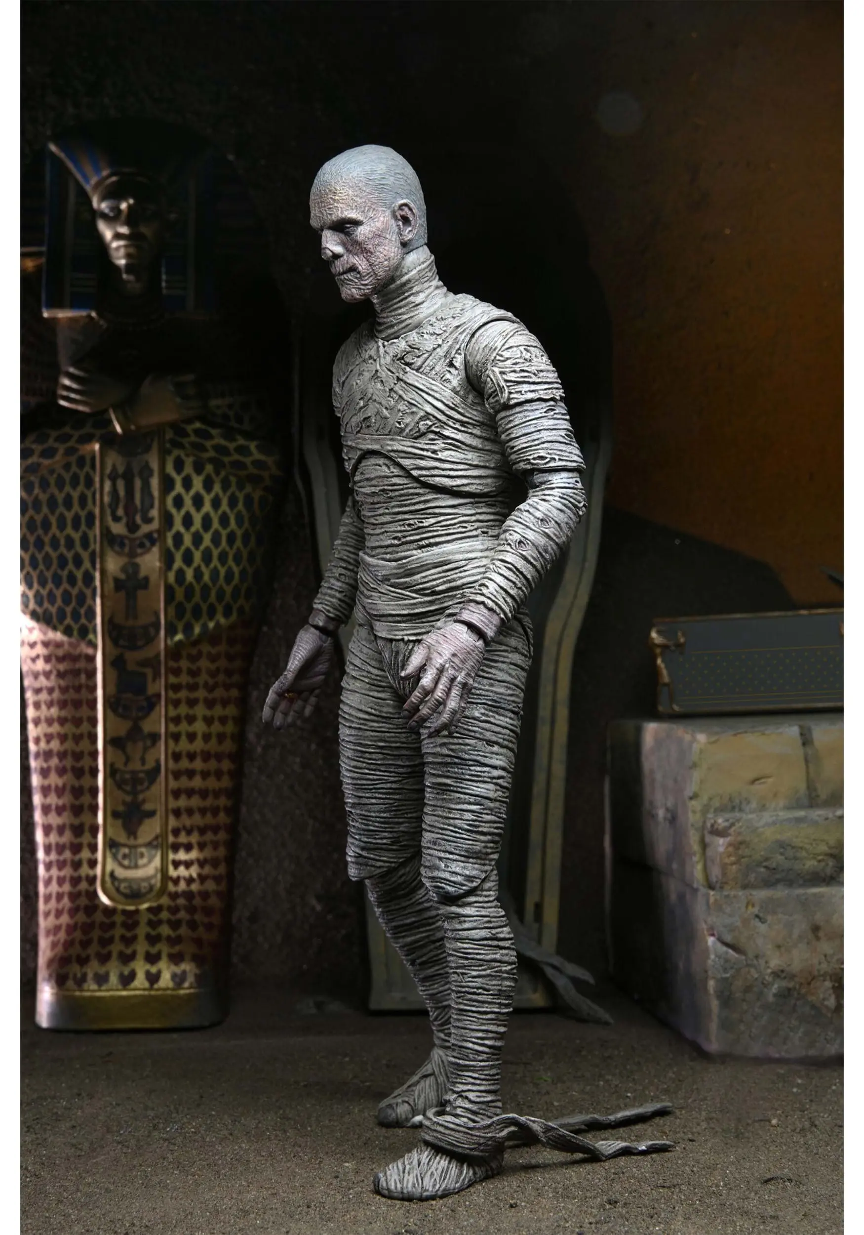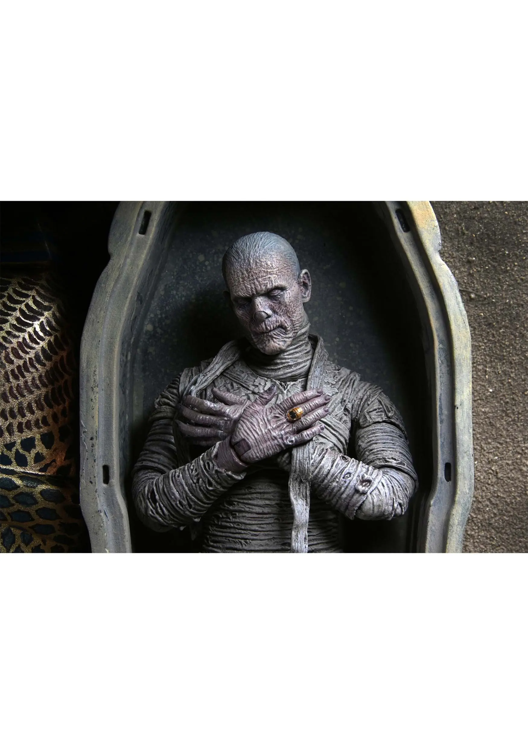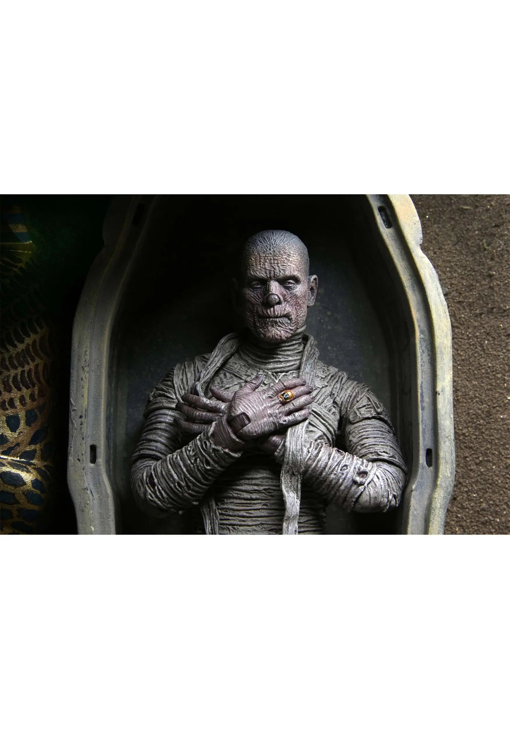 The powers of Ancient Egypt are stirring. Those foolish archaologists have meddled for the last time. The sarcophagus lid rises…an unearthly moan fills the burial chamber…and the Mummy has returned to walk the earth! The officially licensed Universal Monsters Ultimate Mummy 7-Inch Scale Action Figure pays tribute to a classic monster flick that inspired countless novels and movies throughout the years. Thanks to eighteen points of articulation as well as eight accessories, you can pose the figure in multiple different ways.
